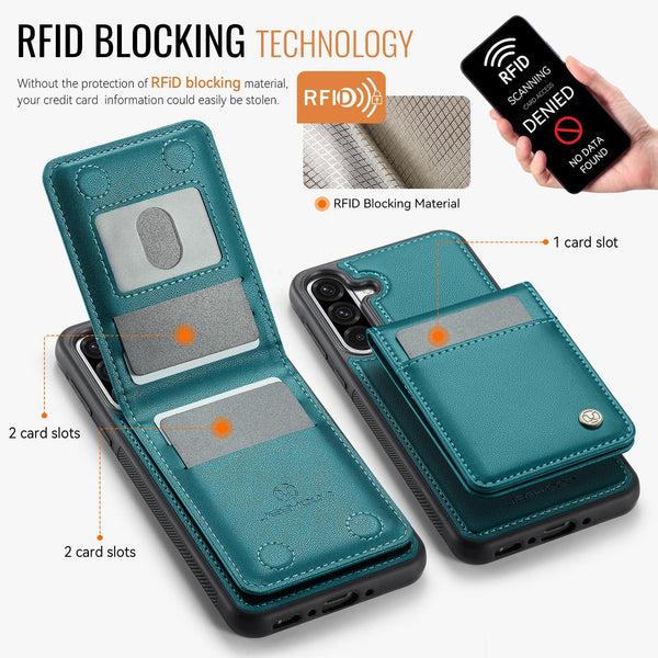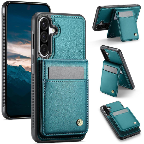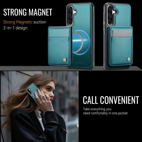 For Samsung Galaxy A36 JEEHOOD J06 British Style RFID MagSafe Card Bag PU Phone Case(Green)