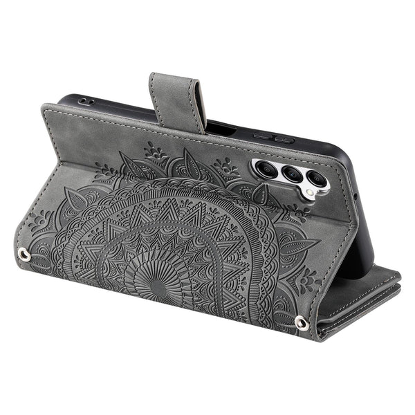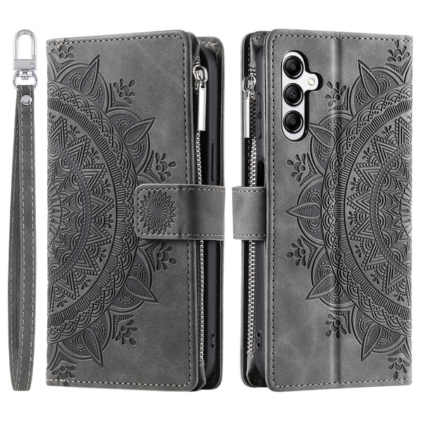 For Samsung Galaxy A36 Multi-Card Totem Zipper Leather Phone Case(Grey)