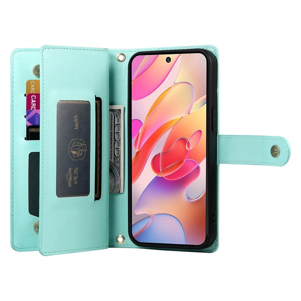 For Samsung Galaxy A36 Nine Card-slot Zipper Wallet Bag Leather Phone Case(Mint Green)