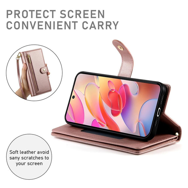 For Samsung Galaxy A36 Nine Card-slot Zipper Wallet Bag Leather Phone Case(Pink)
