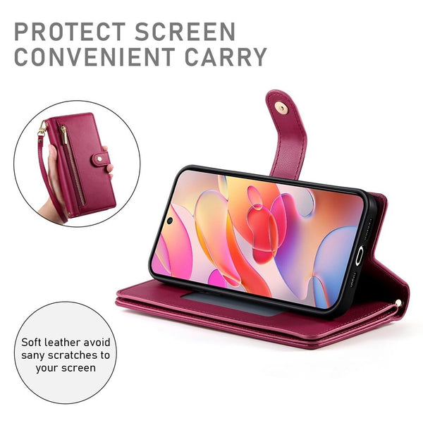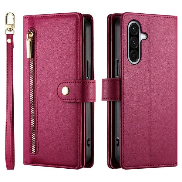 For Samsung Galaxy A36 Nine Card-slot Zipper Wallet Bag Leather Phone Case(Red)