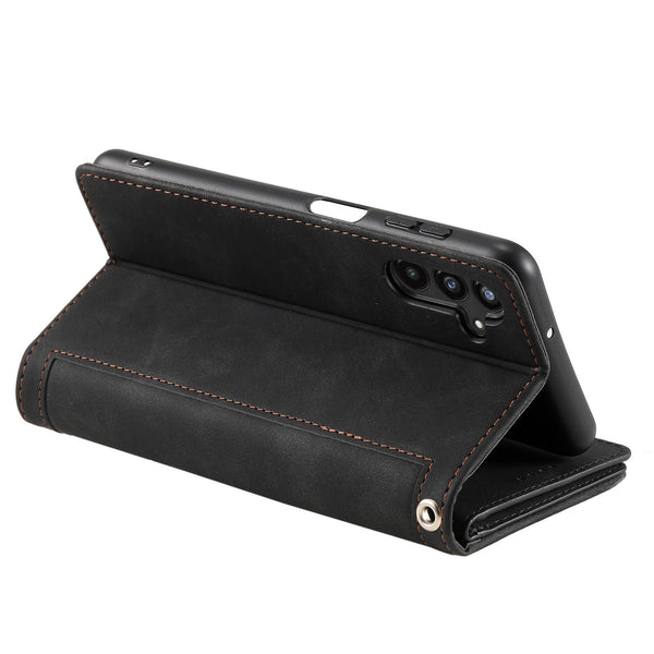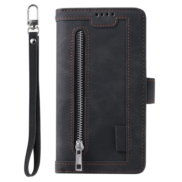 For Samsung Galaxy A36 Nine Card Zipper Bag Leather Phone Case with Lanyard(Black)