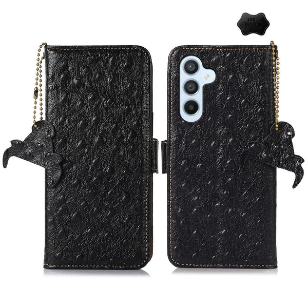 For Samsung Galaxy A36 Ostrich Pattern Genuine Leather RFID Phone Case(Black)