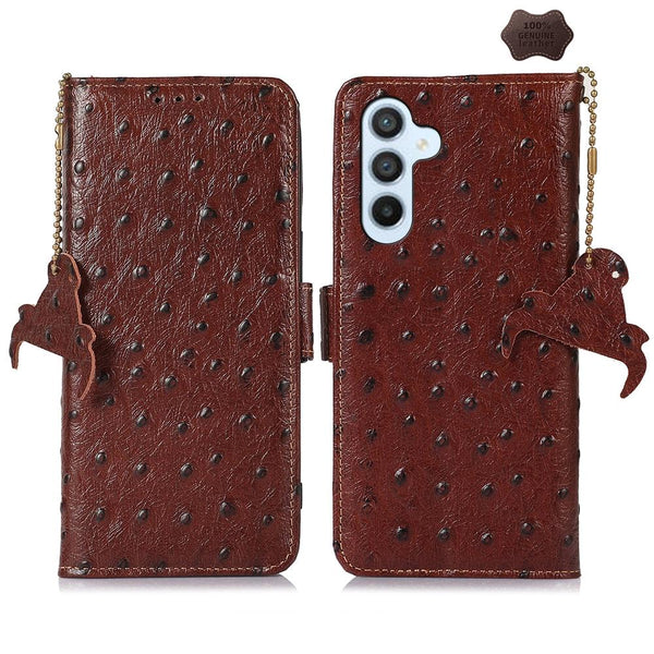 For Samsung Galaxy A36 Ostrich Pattern Genuine Leather RFID Phone Case(Coffee)