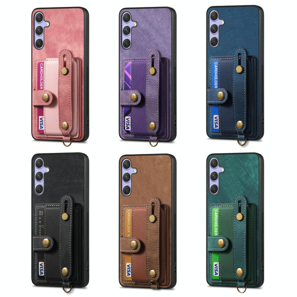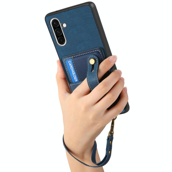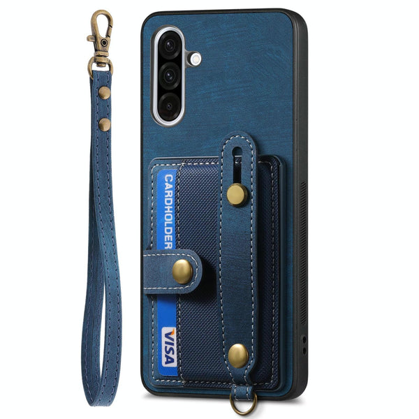 For Samsung Galaxy A36 Retro Cross Wristband Wallet Leather Back Phone Case(Blue)
