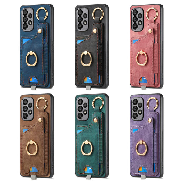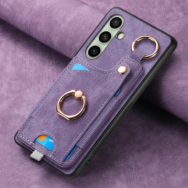 For Samsung Galaxy A36 Retro Skin-feel Ring Card Bag Phone Case with Hang Loop(Purple)