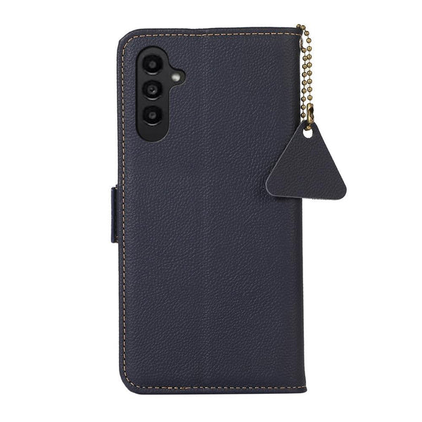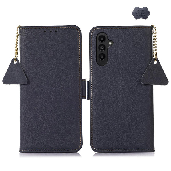 For Samsung Galaxy A36 Side-Magnetic TJ Genuine Leather RFID Phone Case(Blue)