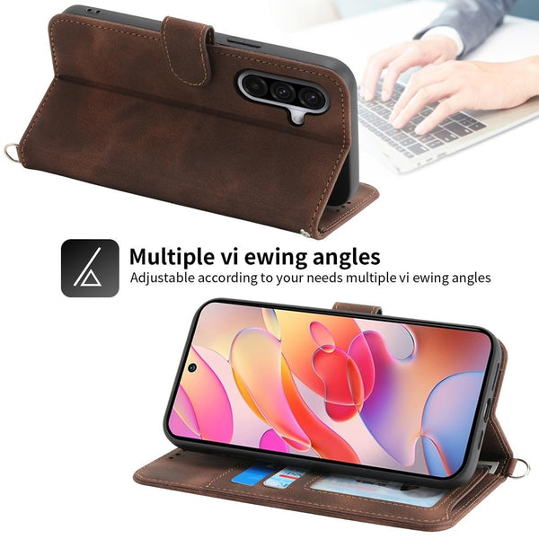 For Samsung Galaxy A36 Skin Feel Flowers Embossed Wallet Leather Phone Case(Brown)