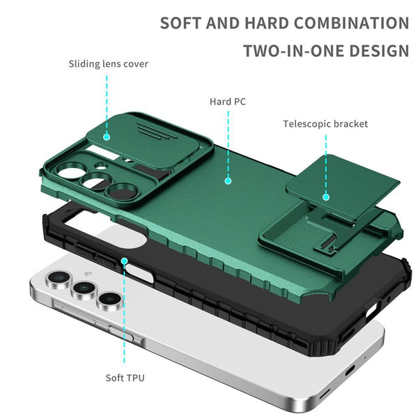 For Samsung Galaxy A36 Stereoscopic Holder Sliding Camshield Phone Case(Green)
