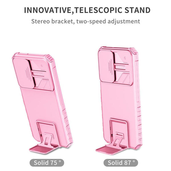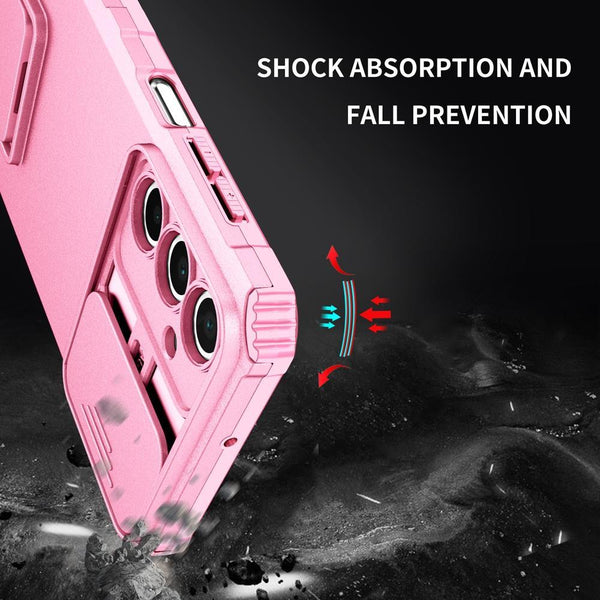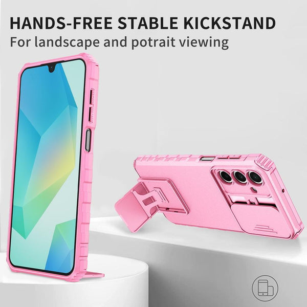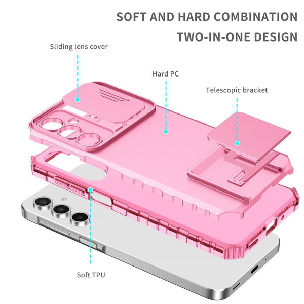For Samsung Galaxy A36 Stereoscopic Holder Sliding Camshield Phone Case(Pink)