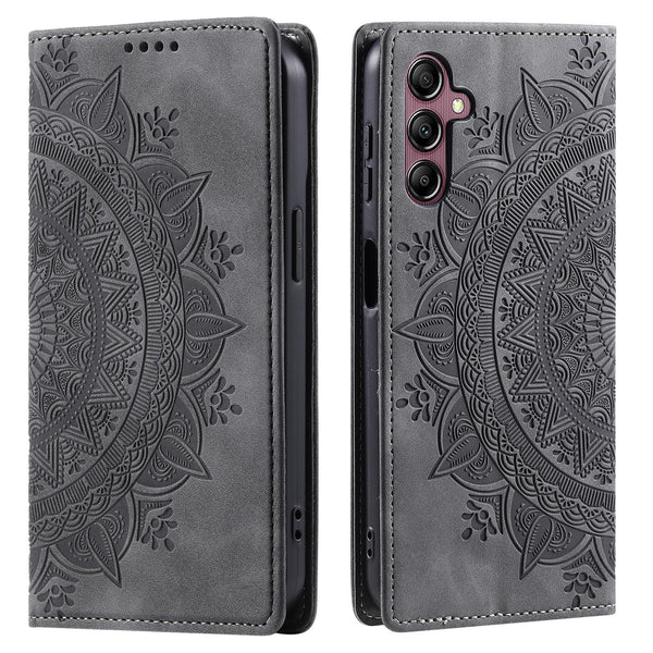 For Samsung Galaxy A36 Totem Embossed Magnetic Leather Phone Case(Grey)