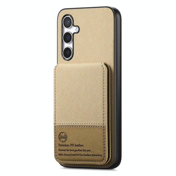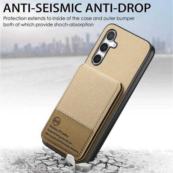 For Samsung Galaxy A36 Twill Fabric Leather Vertical Flip RFID Card Bag Phone Case(Khaki)