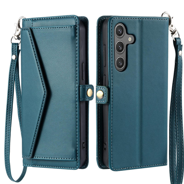 For Samsung Galaxy A36 Wallet Multi-card Slot Leather Phone Case with Lanyard(Green)