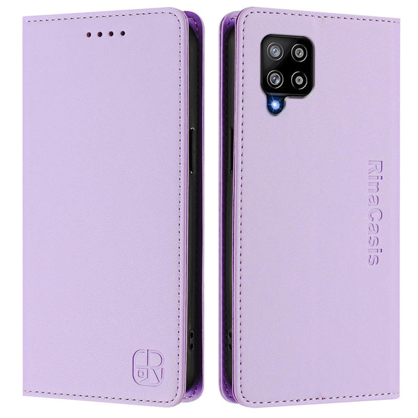 For Samsung Galaxy A42 5G / M42 RC01 Dual-Folded Magnetic Suction RFID Leather Phone Case(Light Purple)