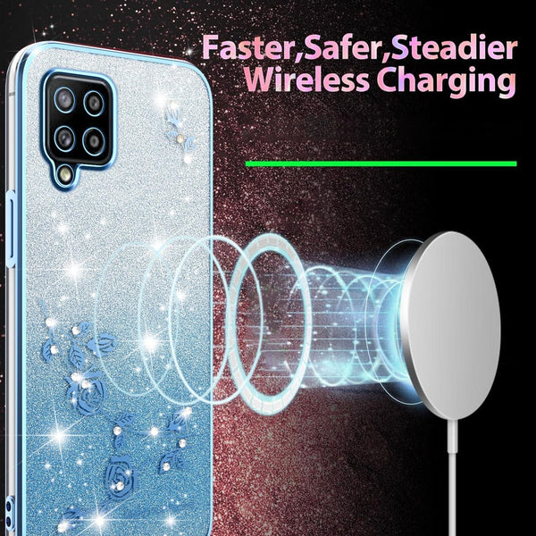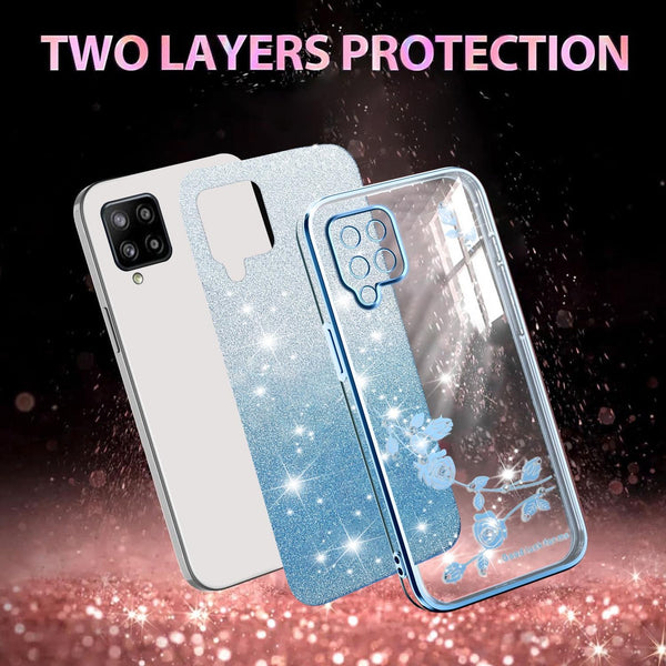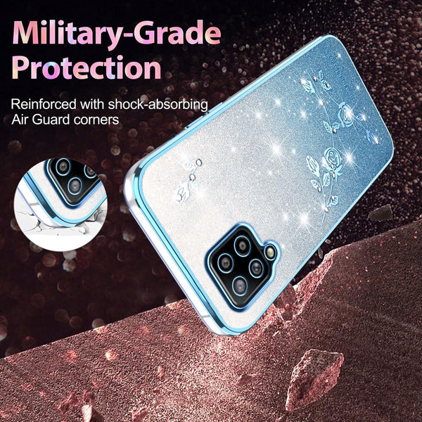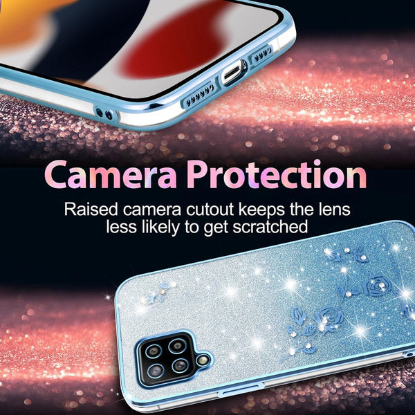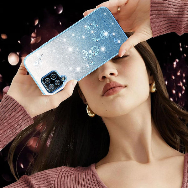 For Samsung Galaxy A42 Gradient Glitter Flower All-inclusive Phone Case(Blue)