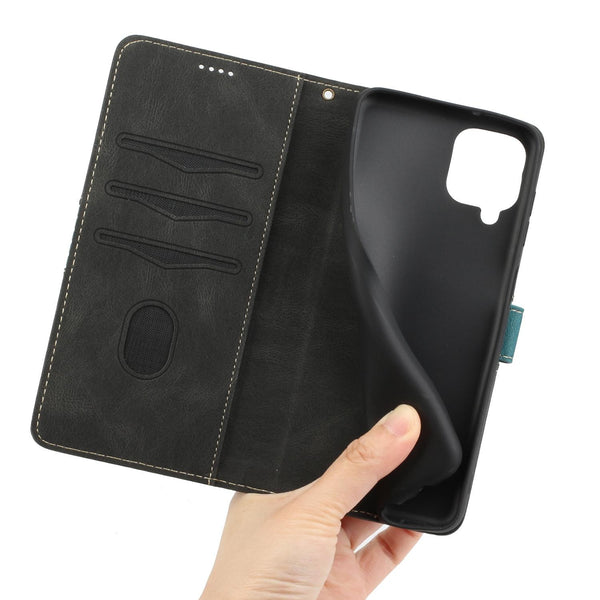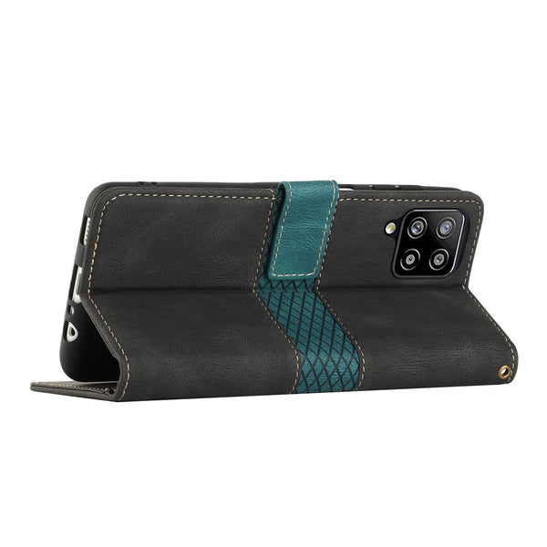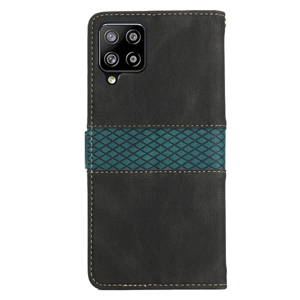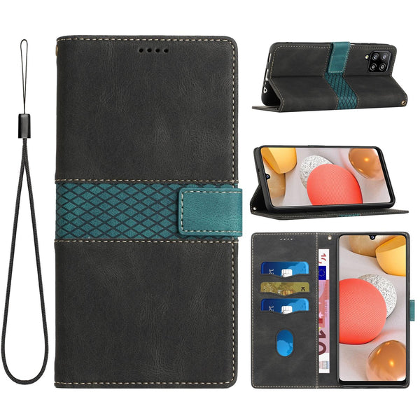 For Samsung Galaxy A42 / M42 5G Grid Stitching Leather Phone Case with Lanyard(Black)