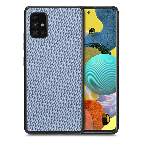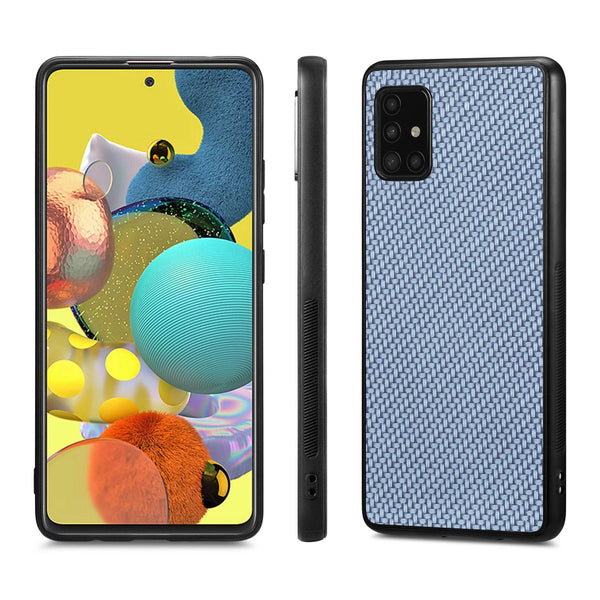 For Samsung Galaxy A51 5G Carbon Fiber Texture Leather Back Cover Phone Case(Blue)