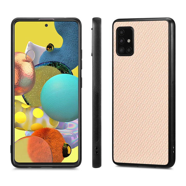 For Samsung Galaxy A51 5G Carbon Fiber Texture Leather Back Cover Phone Case(Khaki)