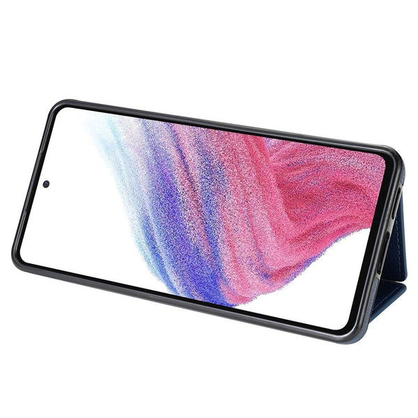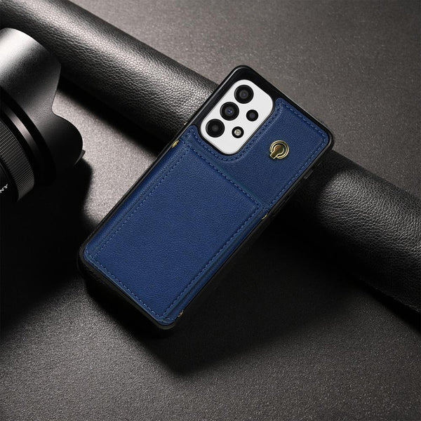 For Samsung Galaxy A52 4G / 5G / A52s 5G Three Fold Card Bag Phone Case with Long Lanyard(Blue)