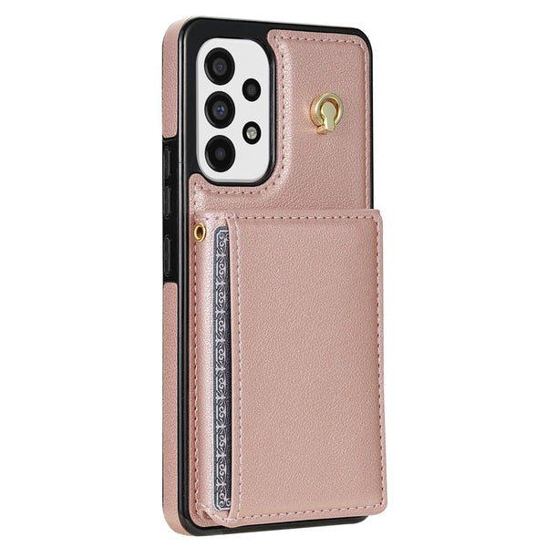 For Samsung Galaxy A52 4G / 5G / A52s 5G Three Fold Card Bag Phone Case with Long Lanyard(Rose Gold)