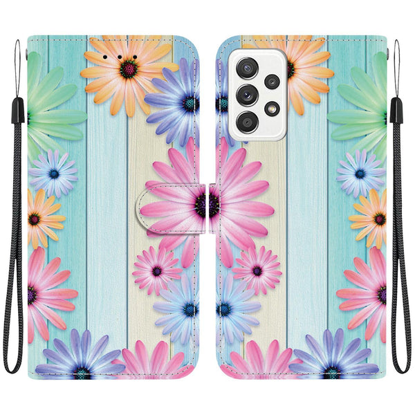For Samsung Galaxy A52 4G / 5G Crystal Texture Colored Drawing Leather Phone Case(Sunflowers)