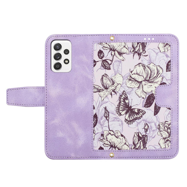 For Samsung Galaxy A52 5G / 4G Floral Pattern Leather Phone Case with Lanyard(Light Purple)