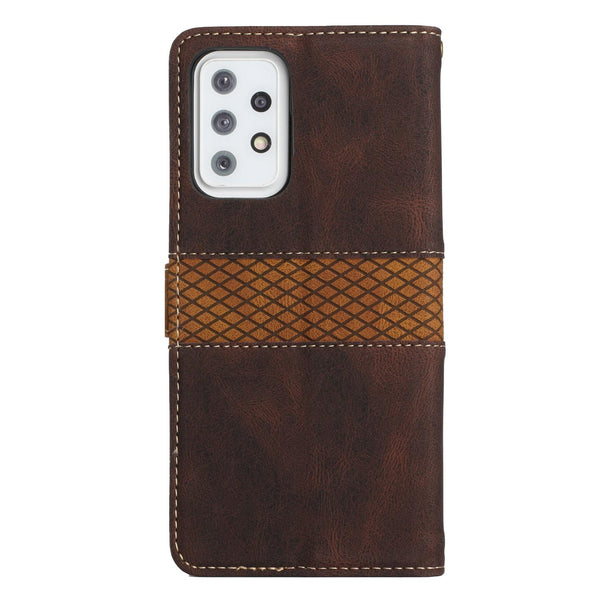 For Samsung Galaxy A52 5G / 4G Grid Stitching Leather Phone Case with Lanyard(Brown)