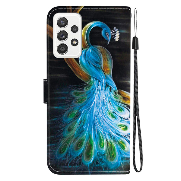 For Samsung Galaxy A53 5G Crystal Texture Colored Drawing Leather Phone Case(Peacock)