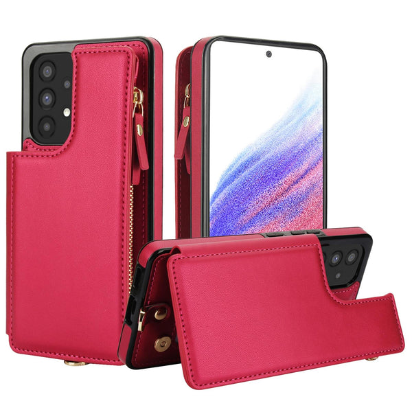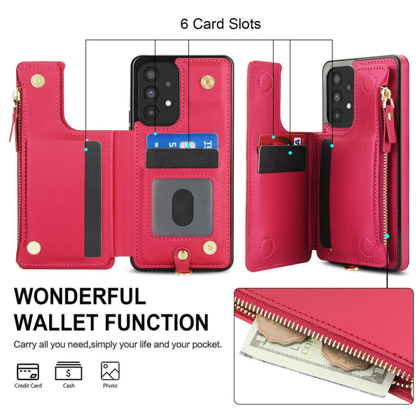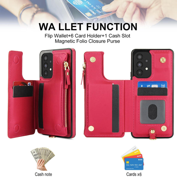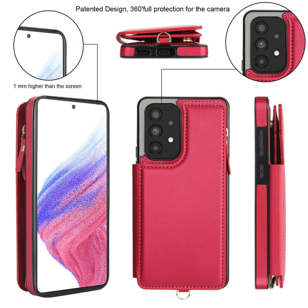 For Samsung Galaxy A53 5G Double Flap Zipper RFID Leather Phone Case with Short Lanyard(Red)