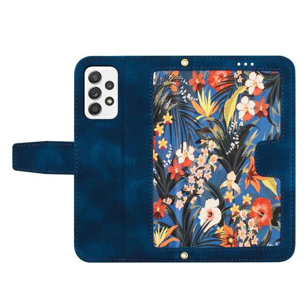 For Samsung Galaxy A53 5G Floral Pattern Leather Phone Case with Lanyard(Dark Blue)