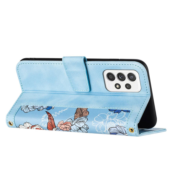 For Samsung Galaxy A53 5G Floral Pattern Leather Phone Case with Lanyard(Light Blue)