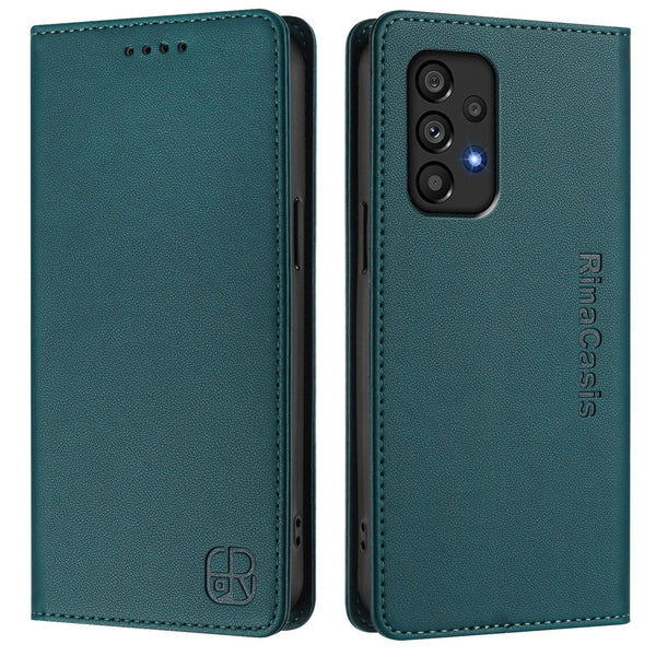 For Samsung Galaxy A53 5G RC01 Dual-Folded Magnetic Suction RFID Leather Phone Case(Dark Green)