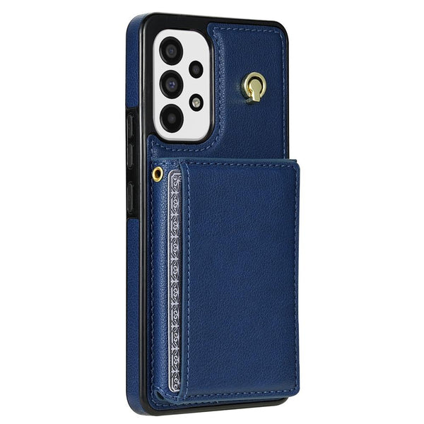 For Samsung Galaxy A53 5G Three Fold Card Bag Phone Case with Long Lanyard(Blue)