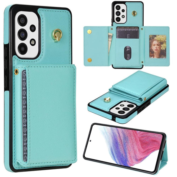 For Samsung Galaxy A53 5G Three Fold Card Bag Phone Case with Long Lanyard(Mint)