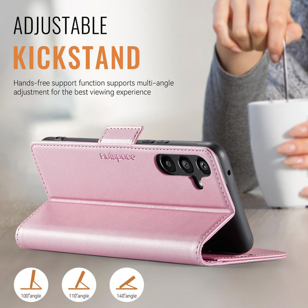 For Samsung Galaxy A54 5G AutSpace A11 Side Buckle MagSafe Magnetic RFID Phone Leather Case(Rose Gold)