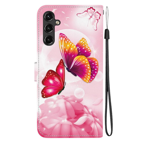 For Samsung Galaxy A54 5G Crystal Texture Colored Drawing Leather Phone Case(Pink Butterflies)