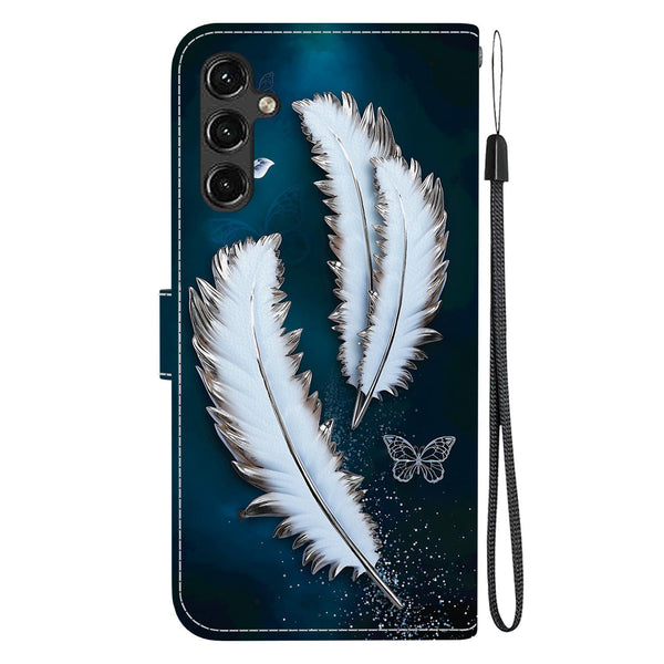 For Samsung Galaxy A54 5G Crystal Texture Colored Drawing Leather Phone Case(White Butterfly Feathers)