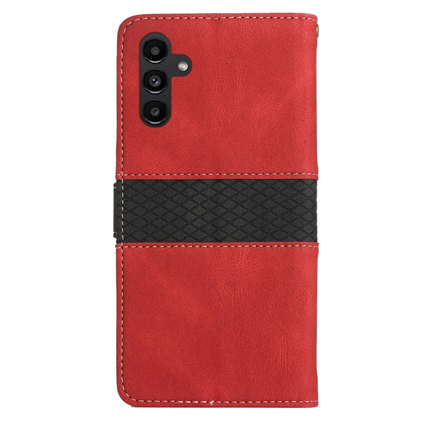 For Samsung Galaxy A54 5G Grid Stitching Leather Phone Case with Lanyard(Red)
