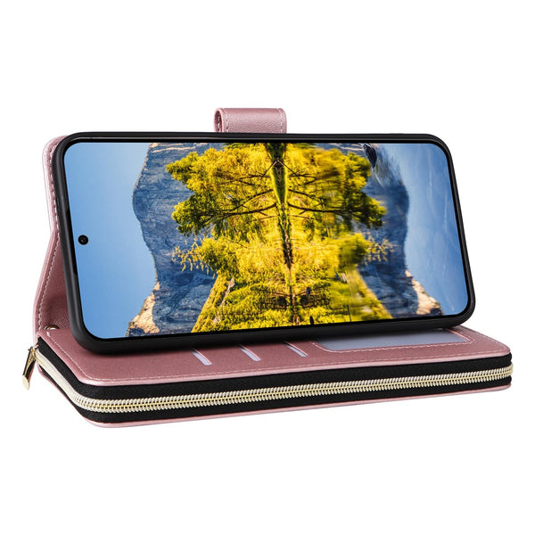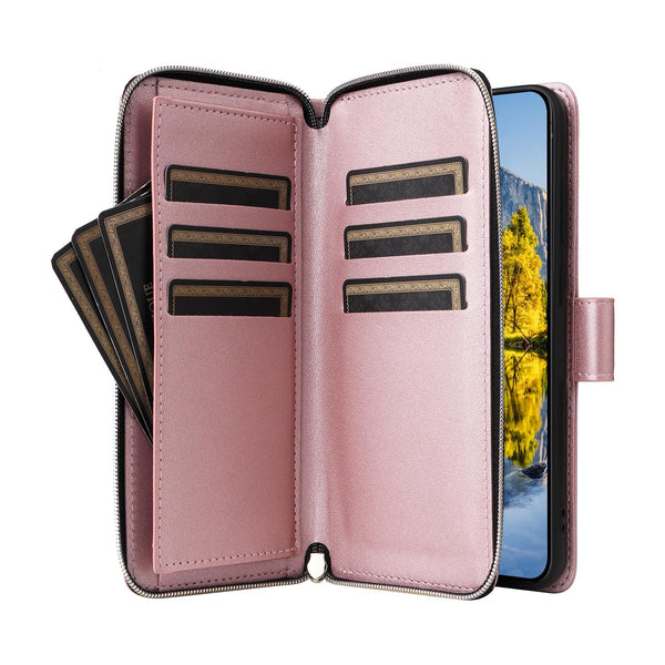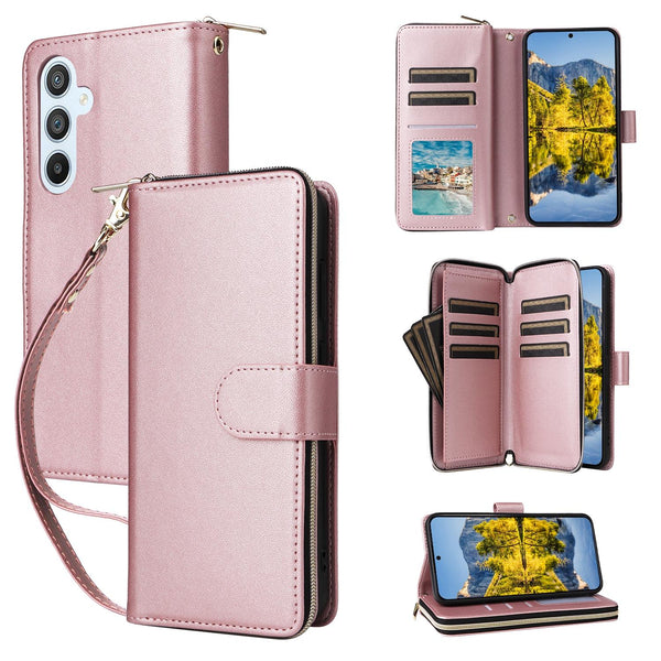 For Samsung Galaxy A54 Nine-card Slots Zipper Wallet Bag Leather Phone Case(Rose Gold)