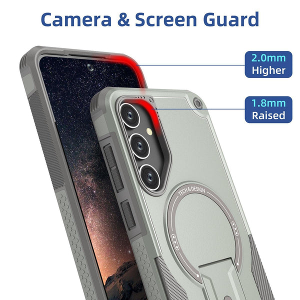 For Samsung Galaxy A55 5G Armor MagSafe Holder PC Hybrid TPU Phone Case(Grey)