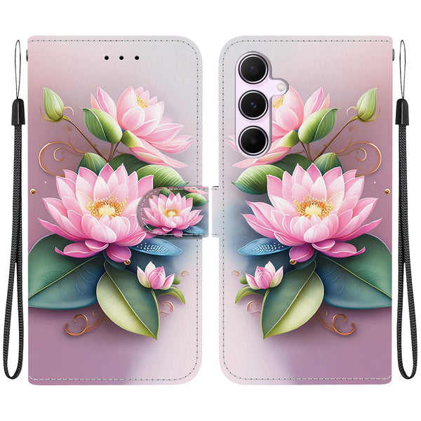 For Samsung Galaxy A55 5G Crystal Texture Colored Drawing Leather Phone Case(Lotus)