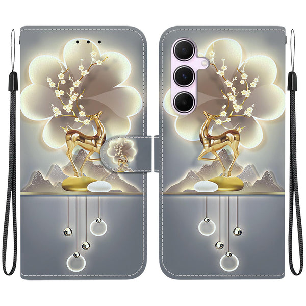 For Samsung Galaxy A55 5G Crystal Texture Colored Drawing Leather Phone Case(Sika Deer)