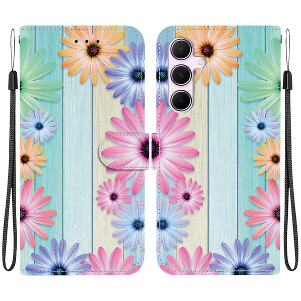 For Samsung Galaxy A55 5G Crystal Texture Colored Drawing Leather Phone Case(Sunflowers)