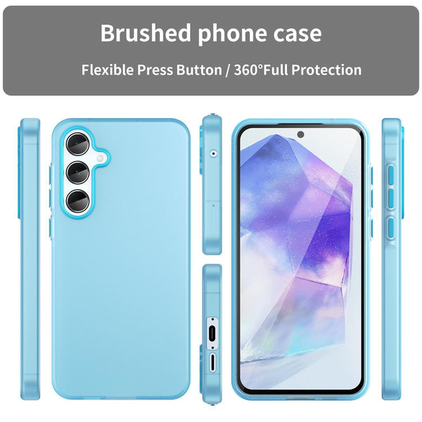 For Samsung Galaxy A55 5G Frosted Translucent TPU Hybrid PC Full Coverage Phone Case(Blue)
