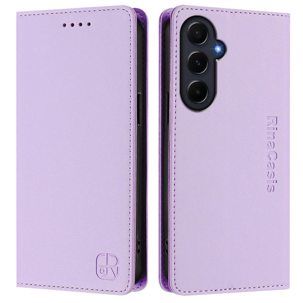 For Samsung Galaxy A55 5G Global RC01 Dual-Folded Magnetic Suction RFID Leather Phone Case(Light Purple)