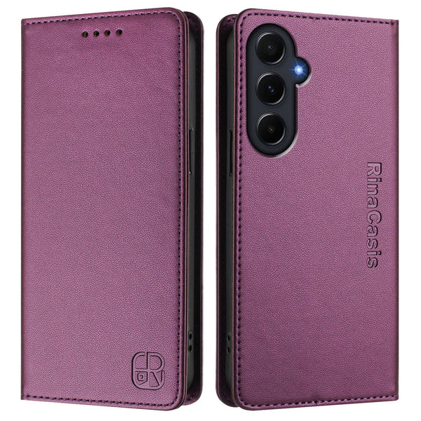 For Samsung Galaxy A55 5G Global RC01 Dual-Folded Magnetic Suction RFID Leather Phone Case(Violet)