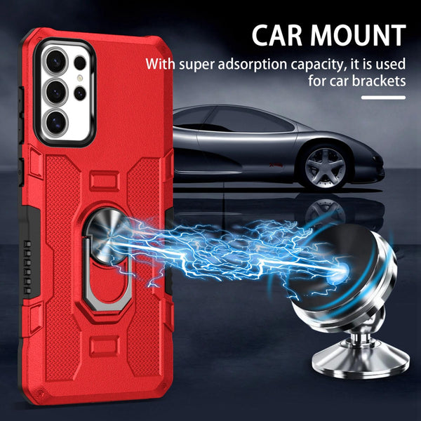 For Samsung Galaxy A55 5G Ring Holder Armor Hybrid Phone Case(Red)