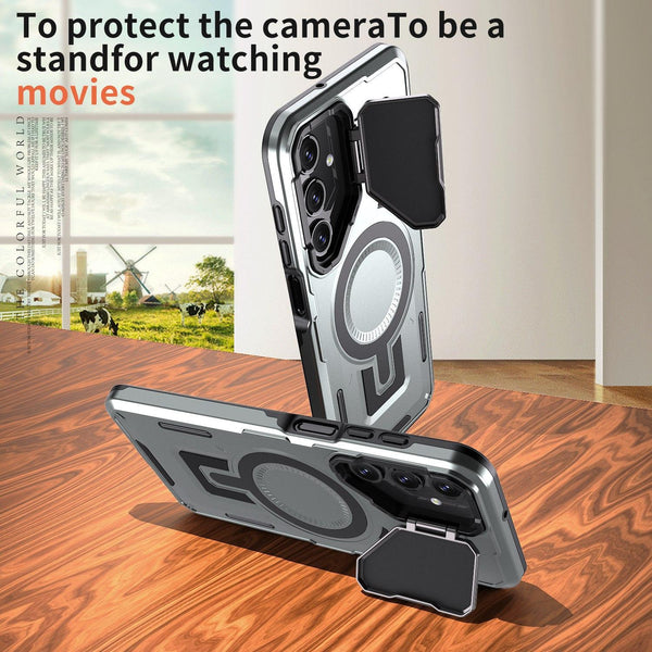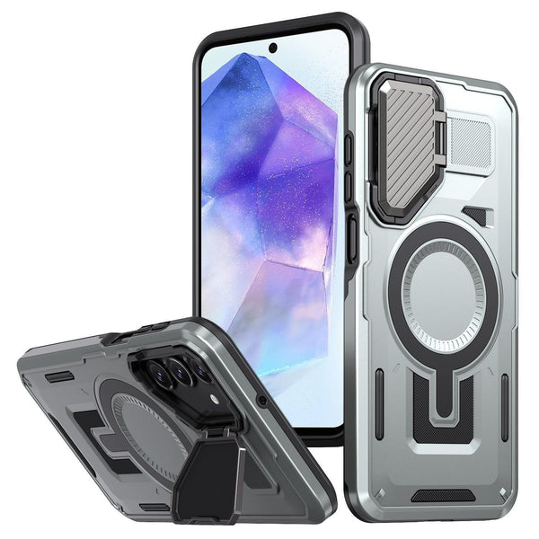 For Samsung Galaxy A55 5G Shield Frame Holder MagSafe Phone Case(Grey)
