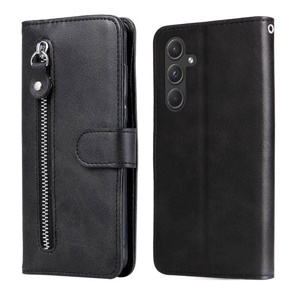 For Samsung Galaxy A55 Fashion Calf Texture Zipper Leather Phone Case(Black)