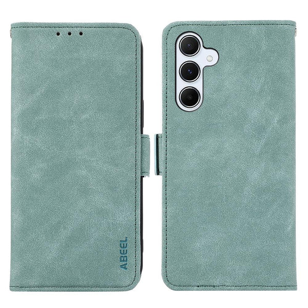 For Samsung Galaxy A56 5G ABEEL Frosted Magnetic RFID Leather Phone Case(Cyan)
